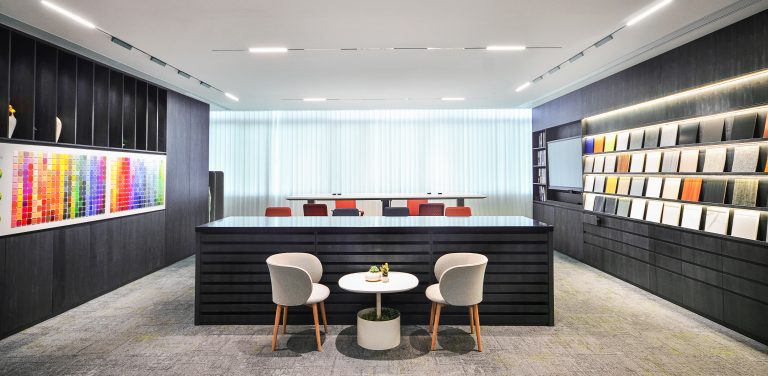 展厅旨在营造出一个舒适,轻松,高效,协作,交流,多元化的新常态办公环境,并且空间在满足兼顾协同工作的开展与深度工作的独立的同时,也关注到空间的连贯性,每个区域都传达着人、事、物的协调之美,使每个访客走过不同区域的同时,切身体验到每个区域所展现的特别之处。